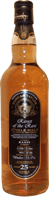 Från vänster i bild har vi en Banff 1974 från Gordon & MacPhail's serie Connoisseurs Choice. Den håller 40 % men tyvärr framgår det inga mer fakta om innehållet så ålder, lagring etc är än så länge ett okänt kapitel. På Stockholm Beer & Whisky festival 2004 provsmakade jag en underbar 28-årig Banff i V&S "Part nan angelen" (förkortat PNA)-serie. Denna Folke Andersson tappning destillerades 1975, buteljerades 2002 och det blev det totalt 863 flaskor med 43 % styrka. Trea från vänster är en Banff i Blackadders tappning. Det är en natural strenght single malt, destillerad vid Banff Distillery den 25 augusti 1976. Lagrad i ekfat (hogsheads) i 24 år och buteljerad i augusti 2001 med fatstyrka (53,7 %), utan filtrering och tillsatser av färgkulörer. Det blev totalt 256 flaskor från fat nr 2247. Sist från vänster återfinns en Duncan Taylor buteljering i serien Rarest of the Rare. Det är en cask strenght som destillerades i nov 1980 och tappades på flaska i april 2006. Fatstyrkan är 53, 1 % och det blev totalt 181 flaskor från fat nr 2912. Naturligtvis är den ofiltrerad och utan färgtillsatser. Skulle du ha en oöppnad flaska Banff till salu, oavsett tappning och ålder, kan du kontakta mig via mail kontakt@igen.se . Välkommen igen! |