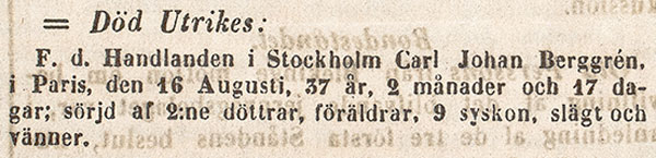 Berggrén, som båda var utbildade skräddare, samt systern Matilda fanns med säkerhet i Paris 1853. Släkten Berggrén hade således starka band till Frankrike och Paris och det kan ju ha varit anledning nog för att Carl Johan skulle