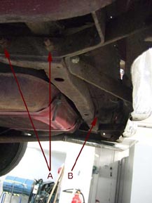 bakre balken. Även där fanns ett befintligt skruvhål (B) som kunde