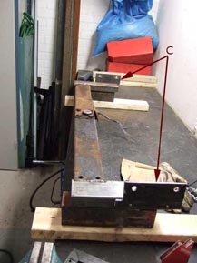 fastskruvat. Därefter togs allt ner igen. Balken smärglades fri från