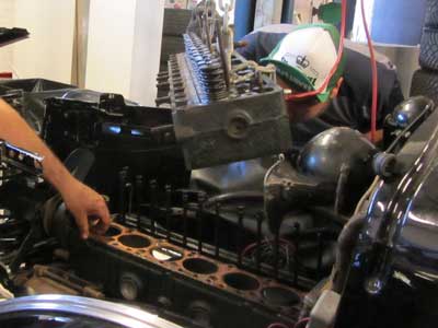 pluggen hissades bilen upp och bromstrummorna togs bort. Hjulcylindrarna